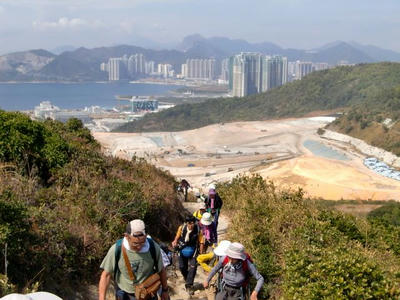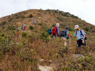 Hong Kong Trailを50キロ歩いた翌日、帰国する日の午前中、お客様にはおまけがある。希望者だけだが、獅子山(Liong Rock, 495m)だ。ホテルを7時に出て登頂、獅子山公園に10時頃に下山してホテルに戻り、シャワーを浴びて11:30にチェックアウト、飲茶して空港と、遅くなったらシャワーなしというちとハードなコース。