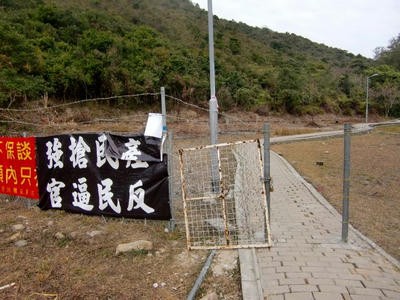 今日もガイドで行き先はシャープピーク(蚺蛇尖, 468m)。西湾村に入る手前でバリケードじゃないが、こんなのがあってビックリ。