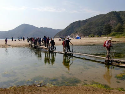 危うい橋を渡ると海風士多。雰囲気変わったでしょ? シャープピークには大勢登っていたが、お客様16名のうち6名が断念。 帰宅して、明日からまた3日間ガイドが続くのでこだわり、ビールは飲まずコーヒーでつまみを食べていて気づいた。(笑) |