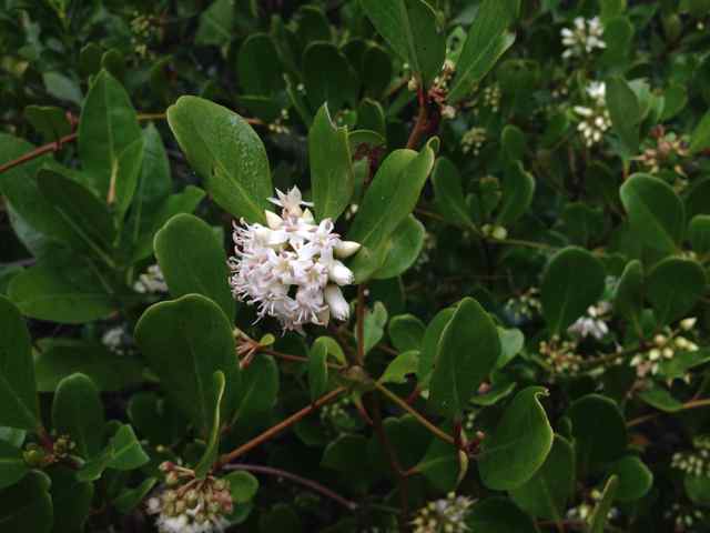 薬物中毒の未成年男子を収容したキリスト教の戒毒所@浪茄湾 シャリンバイ(車輪梅) 西湾山の山頂は霧に包まれていたが、下るにつれ晴れきて、香港の槍ヶ岳(笑)シャープピークの山頂が見えそうで10分ほど待ったんだが、結局ダメ〜 |