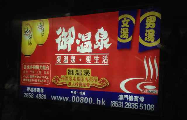 遂に香港にもできたか!と思ったら、御温泉があるのは中国の珠海だって。 |