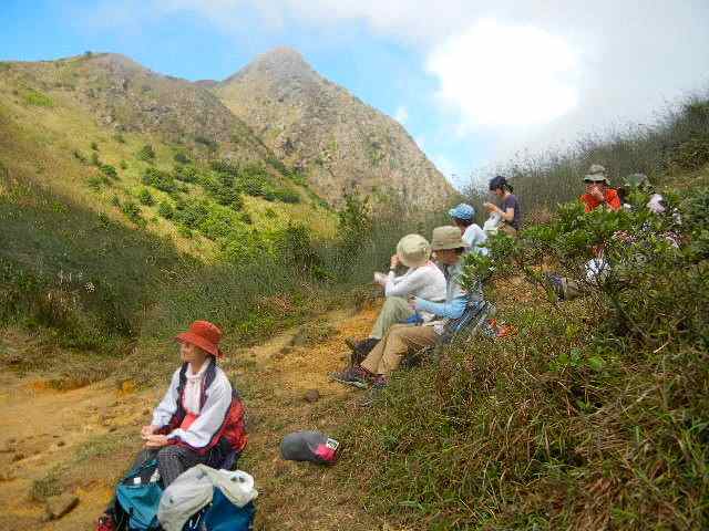 天気予報は最高気温28度、湿度90%以上で、11月も中旬を過ぎたというのに蒸し暑く、馬鞍山は霧の中。