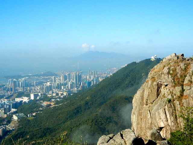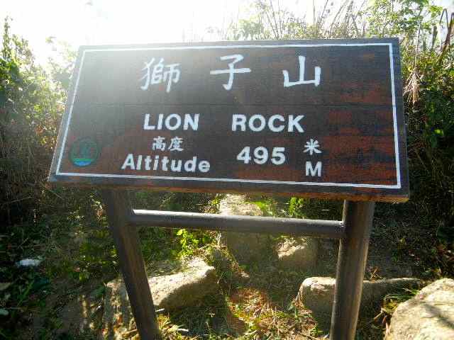 今日の行き先は獅子山(Lion Rock, 495m)。お客様は午後便で帰国するので、これはオプション。3人が疲れたと黄大仙のお寺見物になり、7人+添乗員をご案内。少しガスがかかっていたが、山頂に着く頃には晴れ、暑い〜