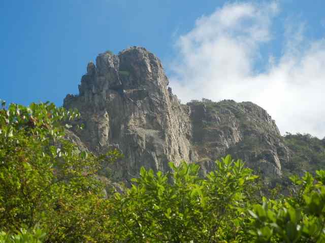 この角度だと獅子に見えない、ごつごつの岩山。頭まで登って下山する途中で撮影。