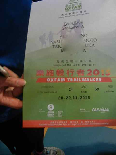 22:30、Cチーム大帽山下に到着。疲れているが特に故障はないようで、食事をして23時過ぎに出発。サポーターは残り物を食べて撤収。運転手のR氏に来てもらい、1名帰宅、5名でゴールのお迎えに行く。