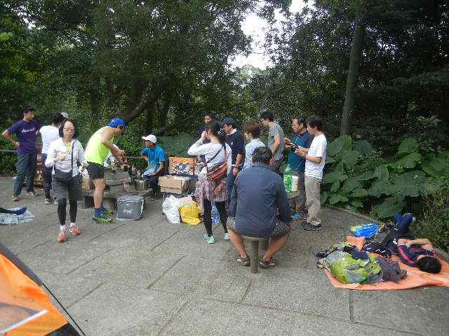 昨日部屋を出たのは8:40だった。買い物をしてサポート車に乗り、1ケ所でサポーターをピックアップ、大帽山下のBBQ サイトへは7名で行く。既に場所取りをしてくれてる人がいて、深圳からも2名、闇参加のS氏は残念ながらリタイアされたが奥様が来てくれ、最終的にサポーターは15名だったのかな?