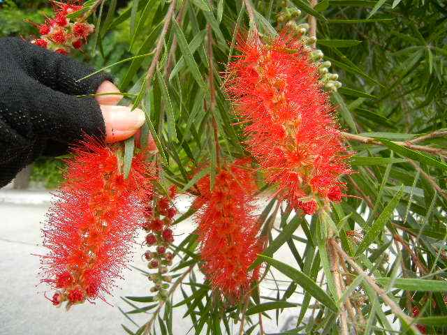 紅千層の花を発見。香港では白千層の方がポビュラーだが、和名がなく、漢字をそのままハクセンソウと読んでいる。だが紅千層はマキバブラシノキという和名がある。どちらも原産地はオーストラリアらしいのに、この差は何故だ?