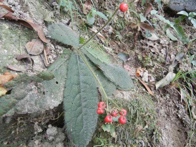 いつも来る度に見る、他では見たことがない、毎度調べようと写真を撮るのだがそのままになっていた植物の名前を遂に調べた! 蓮座紫金牛。変な名前〜 和名はない。