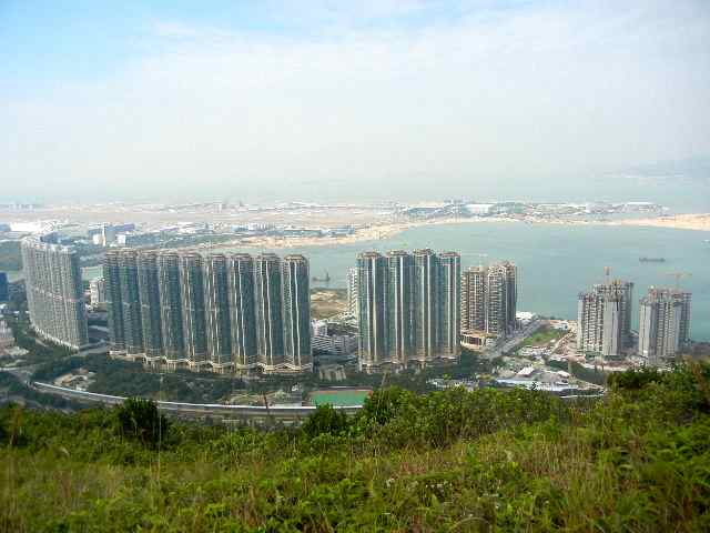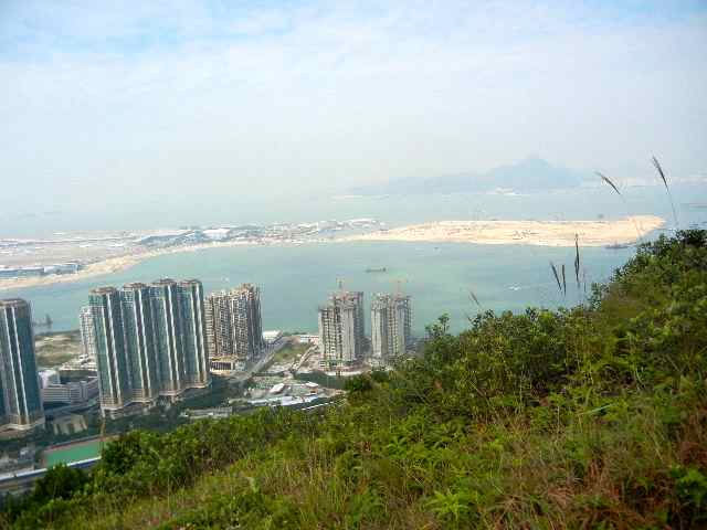 鞍部を過ぎると空港が近い。右の更地はマカオへ架けている橋=道路の入国審査場か何かかな?