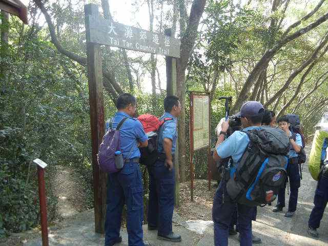 今日は毎週日曜日にある山仲間との山行。行き先は大灘郊遊徑( Tai Tan Country Trail )で、集合場所はスタート地点のアーチ。西貢住みの私はバスと徒歩、Y氏はタクシーと徒歩、街住みの6人が地下鉄の駅からタクシー、で8名が集合。(写真は民安隊の人達で我々とは関係なし)