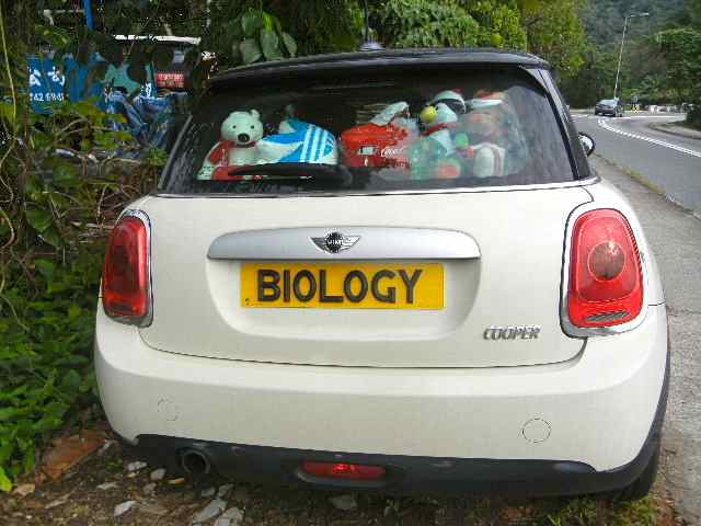 この車、嘘じゃなく、ホントにBIOLOGY=植物学ってナンバー。香港では5000ドル≒76000円払って8文字以内で希望のナンバー(アルファベットもOK)を提出。オークションで他に欲しいという人がいなければ自分のものになり、誰か欲しいという人がいたら競売になるんだって。ちなみに「I LOVE U」は140万ドル≒2100万円だったそうだ!
