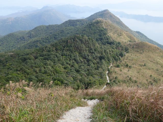 黃嶺から下って衛奕信徑(Wilson Trail)に出て、西に行くか東に行くか迷ったが、初参加の人がいたので東の八仙嶺へ行こうってことになり、八仙嶺が始まる手前で振り返った眺め。