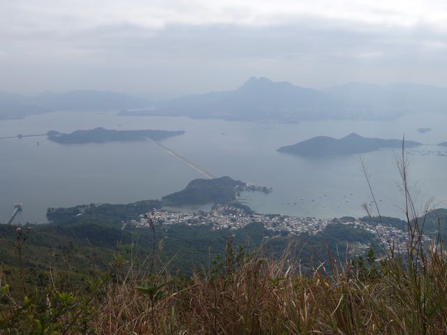 北は深圳の梧桐山で、右下の海辺は中国の沙頭角の街。さつき旅館も見える〜 ^^
