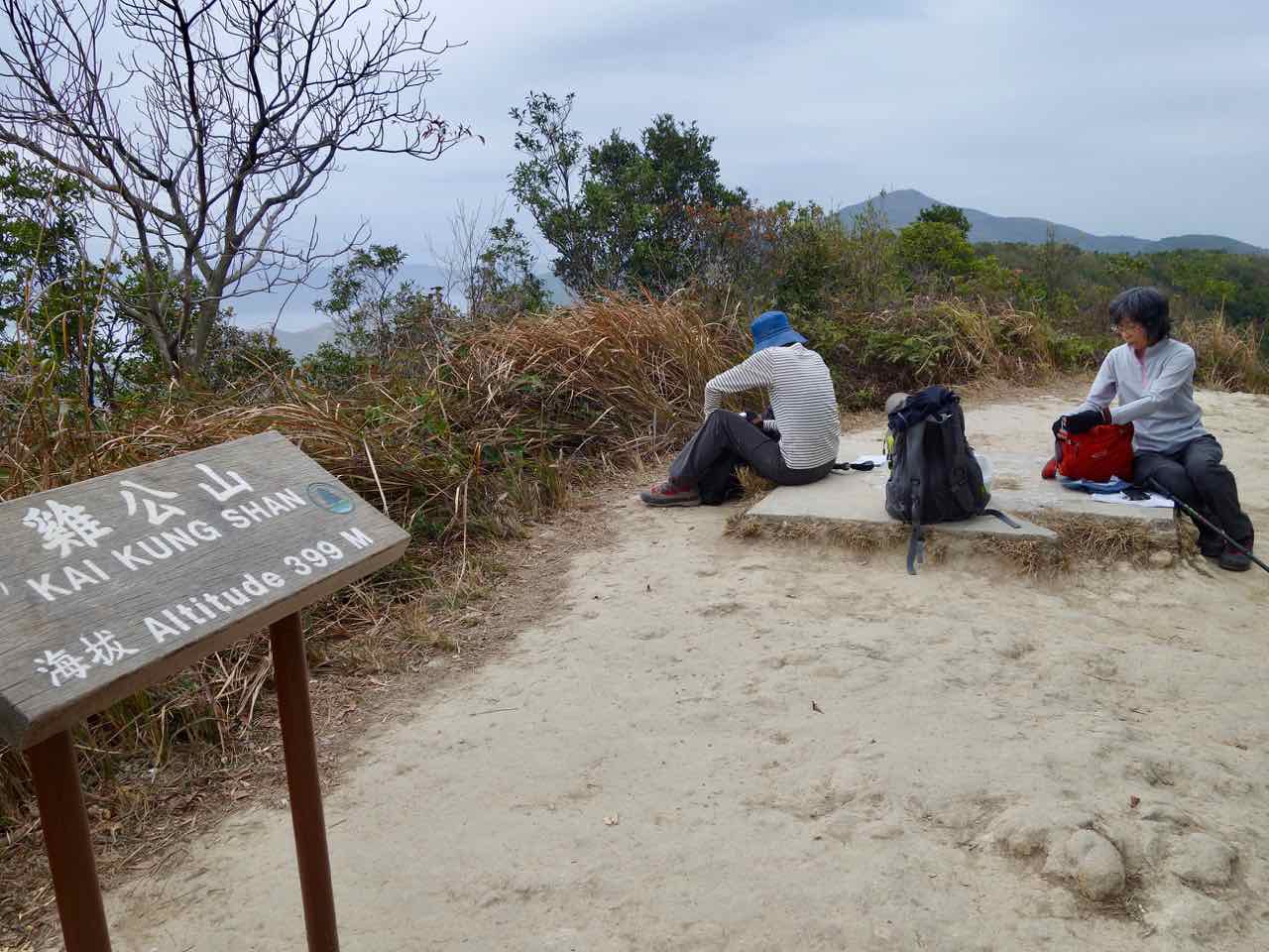 もうほとんど冠毛になって飛んでしまったのに、立派なヤギツノキョウチクトウが残っていた。 鶏公山(Kai Kung Shan, 399m)と、奥に馬鞍山(Ma On Shan, 702m)。 ようやく登頂! 夕食は、ベジタリアンのインド料理でした。美味しかった! |