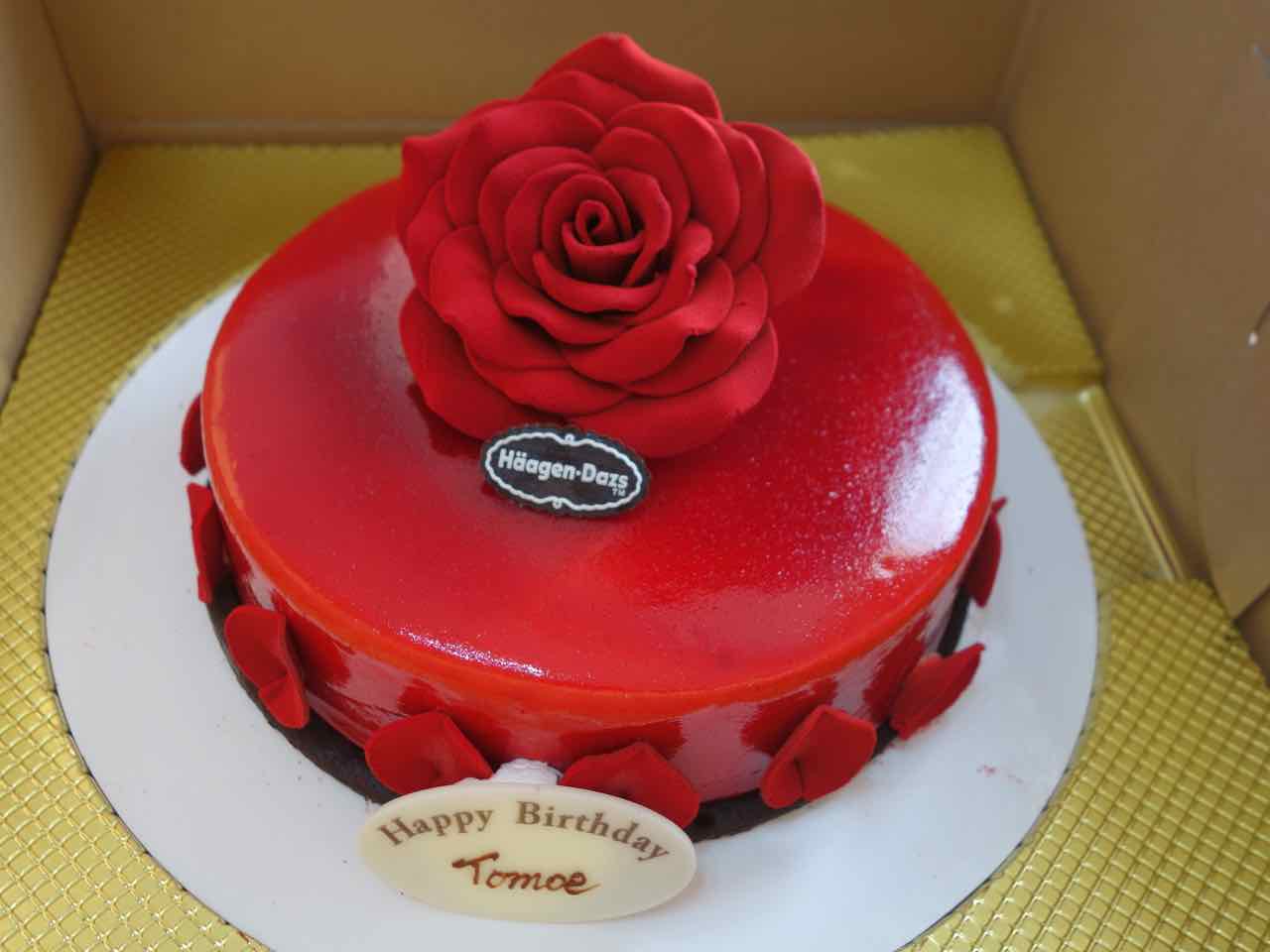 そして大晦日が誕生日の人へ、ハーゲンダッツのアイスケーキ。美しい〜 直径30センチくらいあって、みんなでお相伴。
