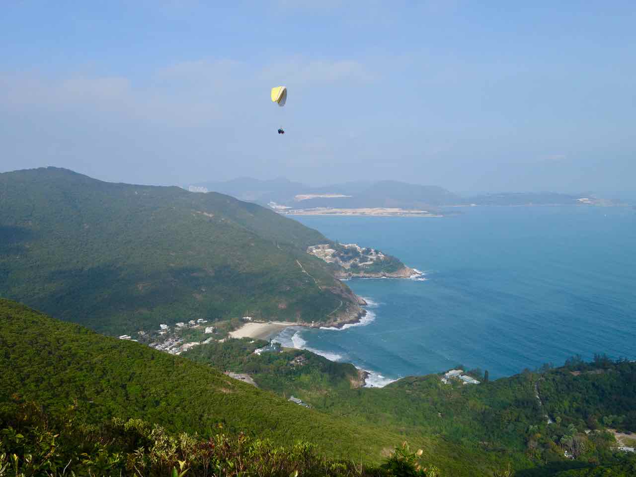 布袋澳でお昼を食べて、午後は龍脊(Dragon's Back, 284m)へ。午前中は曇っていたけど午後には晴れ、パラグライダーしてる人がいた。