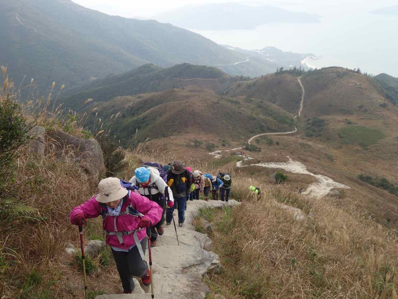 今日は、昨日、一昨日とは違うお客様9名プラス添乗員さんと鳳凰山(Lantau Peak, 934m)へ。天気予報は当たって最低気温が12度と寒い〜 目指す鳳凰山は一番奥。