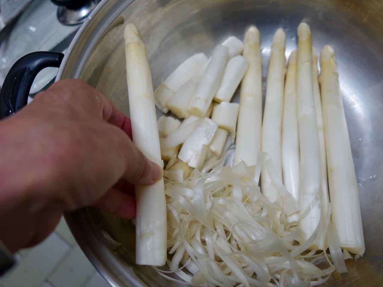 それは緑のアスパラガスで、立派なホワイトアスパラガスを見つけたから、料理の仕方はそう変わらないだろうと買ってみた。ところが、買ってからよく調べると、意外に面倒! あれこれググッても気が散ると最初の以外調べてないから、もしかしたら簡単な方法があるのかもしれないが…