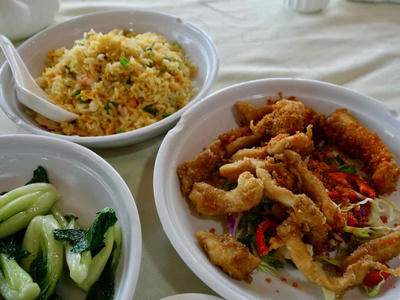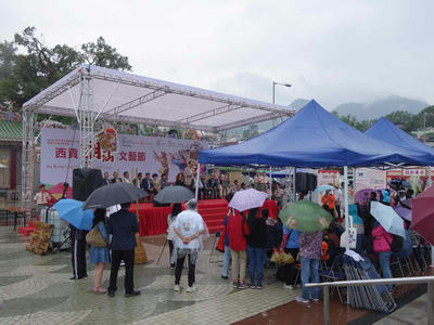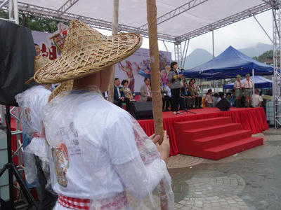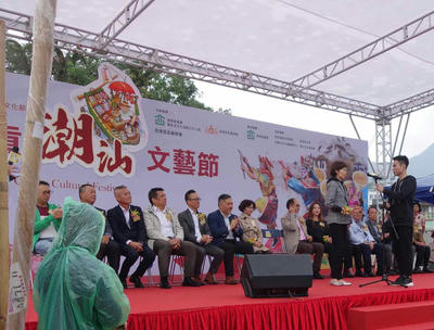 なんだろう?と思いながら廟まで来たら、式をやってた。「潮汕文藝節」だって。潮州の文芸祭りって感じ? パレードしてたのは全員「潮州人」なのかな? |