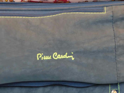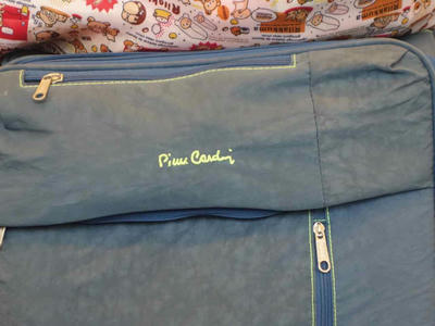 あら? 珍しい、おばちゃんピエールカルダンの、しかも布製のスーツケースかい? 使い込んでるねぇ。 だが、しかし、よく見ると、やはり、なんか変!(^^) これが正しいピールカルダンのロゴだ〜 |